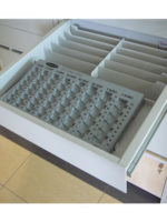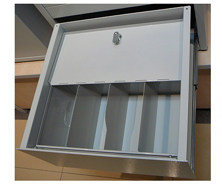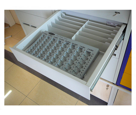 Les produits EuroMulti sont constitués de deux parties: une structure et des tiroirs en aciers. Les paneaux frontaux des tiroirs sont renforcés avec des plaques d’acier de 6mm d’épaisseur. Ils sont également équipés d’un système modulaire qui permet des centaines de combinaisons de tiroirs et de fentes de dépôts. Chaque tiroir est également doté d’une temporisation configurable. Ils sont adaptés aux billets, pièces, chèques, cartes, et documents divers. Ils sont donc idéaux pour les banques, bureau de postes, stations essence, et autres commerces faisant face à d’importants flux de liquidités. Le produit se met en marche à l’aide d’une clé et d’un code secret.
